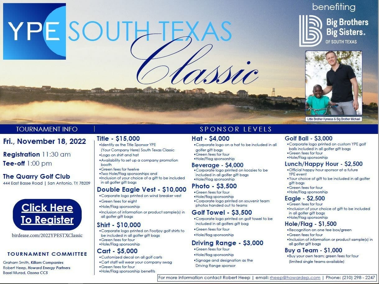 2022 YPE South Texas Classic Charity Golf Tournament Nov 18th – San Antonio