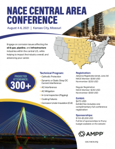 Join us in August 2021 as AMPP (formerly NACE International and SSPC) and the NACE Kansas City Section bring you a technical program that unites different areas from across the corrosion industry, including cathodic protection, DC/AC current interference, in-line inspections, coating failures and corrosion under insulation, and offers real case-based corrosion issues, testing, and remediations as well as the latest technologies that can be put to use today.