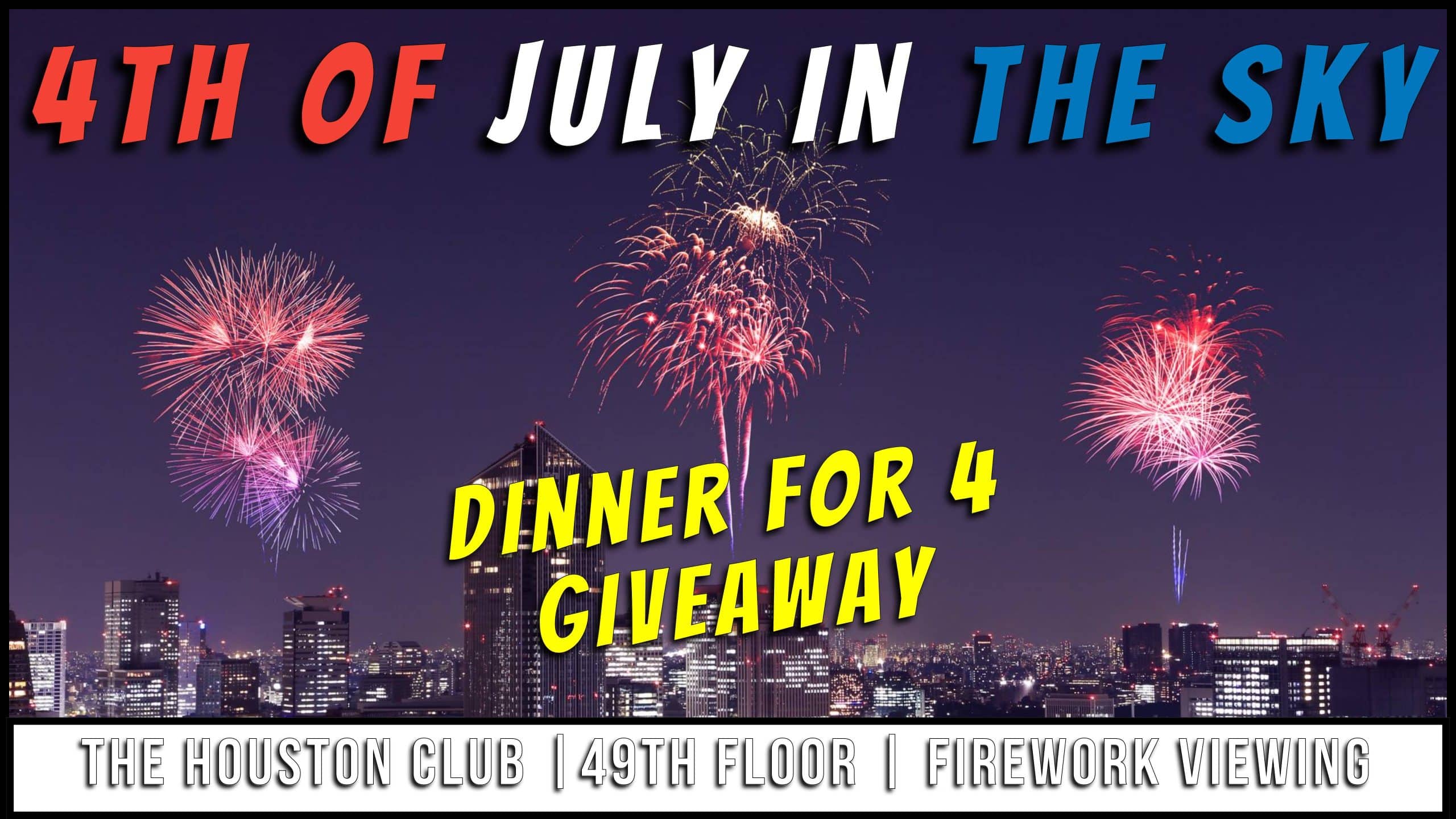 GIVEAWAY: 4th of July in The Sky Dinner for 4 – The Houston Club 4th of July Fireworks Viewing
