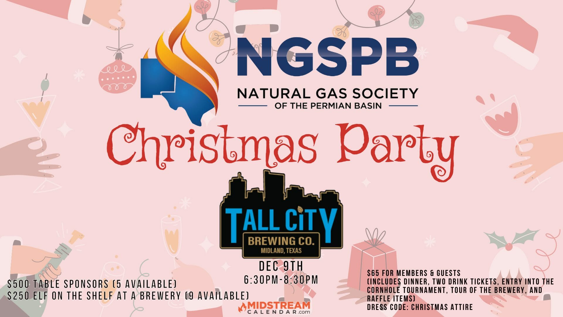 2022 Natural Gas Society of The Permian Basin Christmas Party will be Dec 1st at the Midland Petroleum Club: