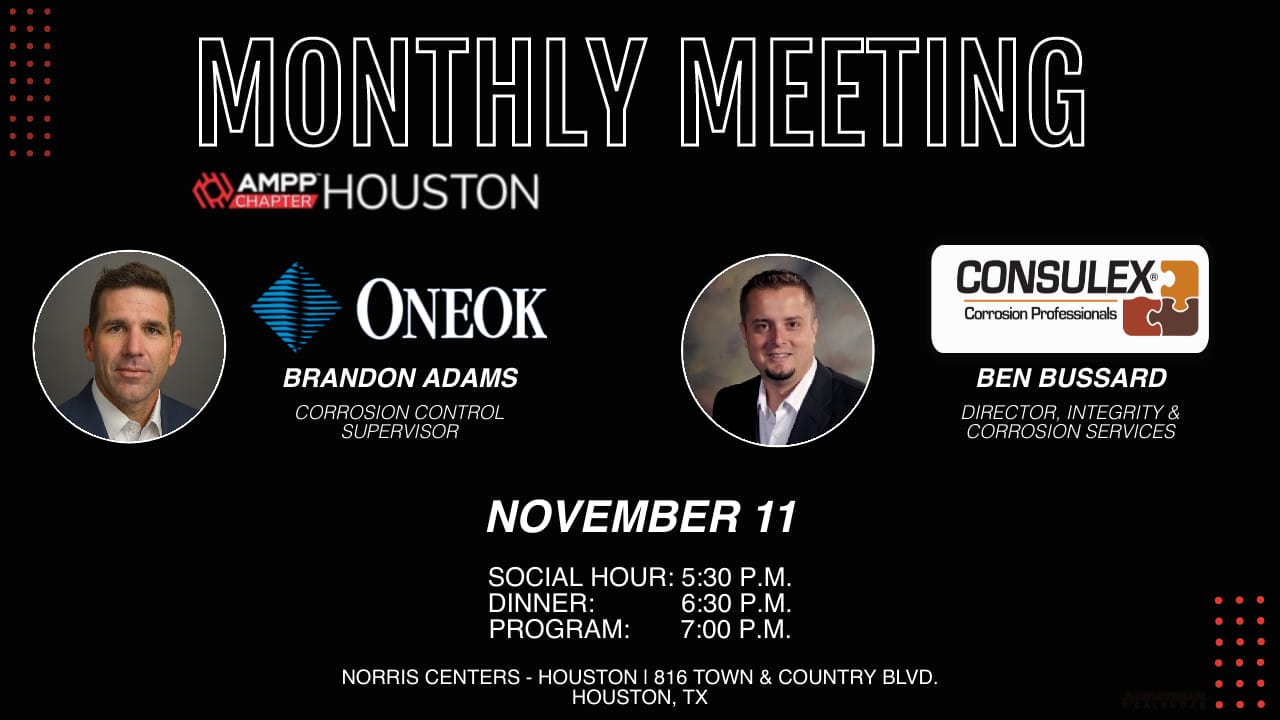 November AMPP Houston Monthly Meeting Nov 11, 2025 Feat Speakers from ONEOK & Consulex