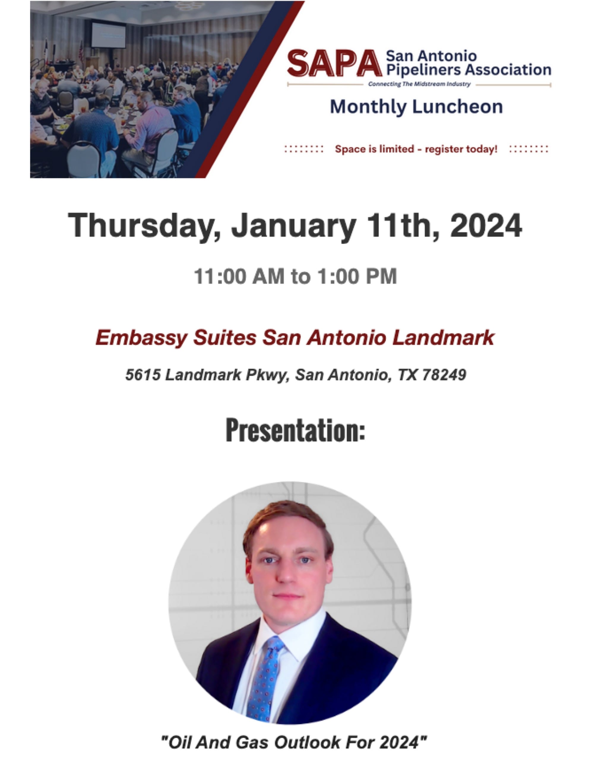 Register for the SAPA January Luncheon – San Antonio Pipeliners Association Jan 11, 2024 Meeting – San Antonio
