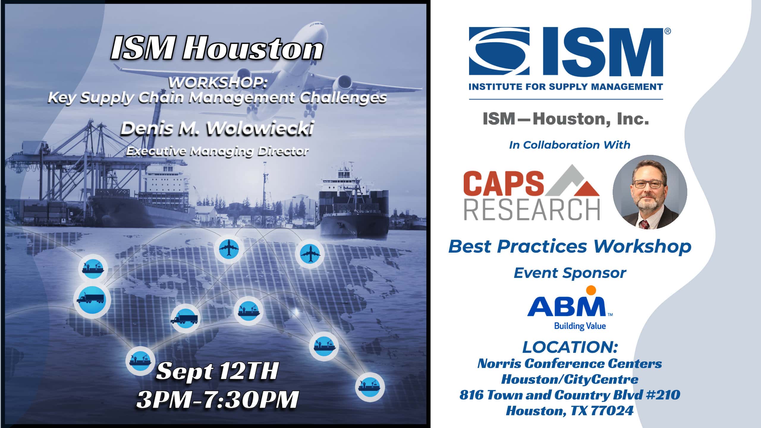 ISM-Houston & CAPS Research are collaborating for an interactive workshop addressing Key Supply Chain Management Challenges and industry Best Practices.