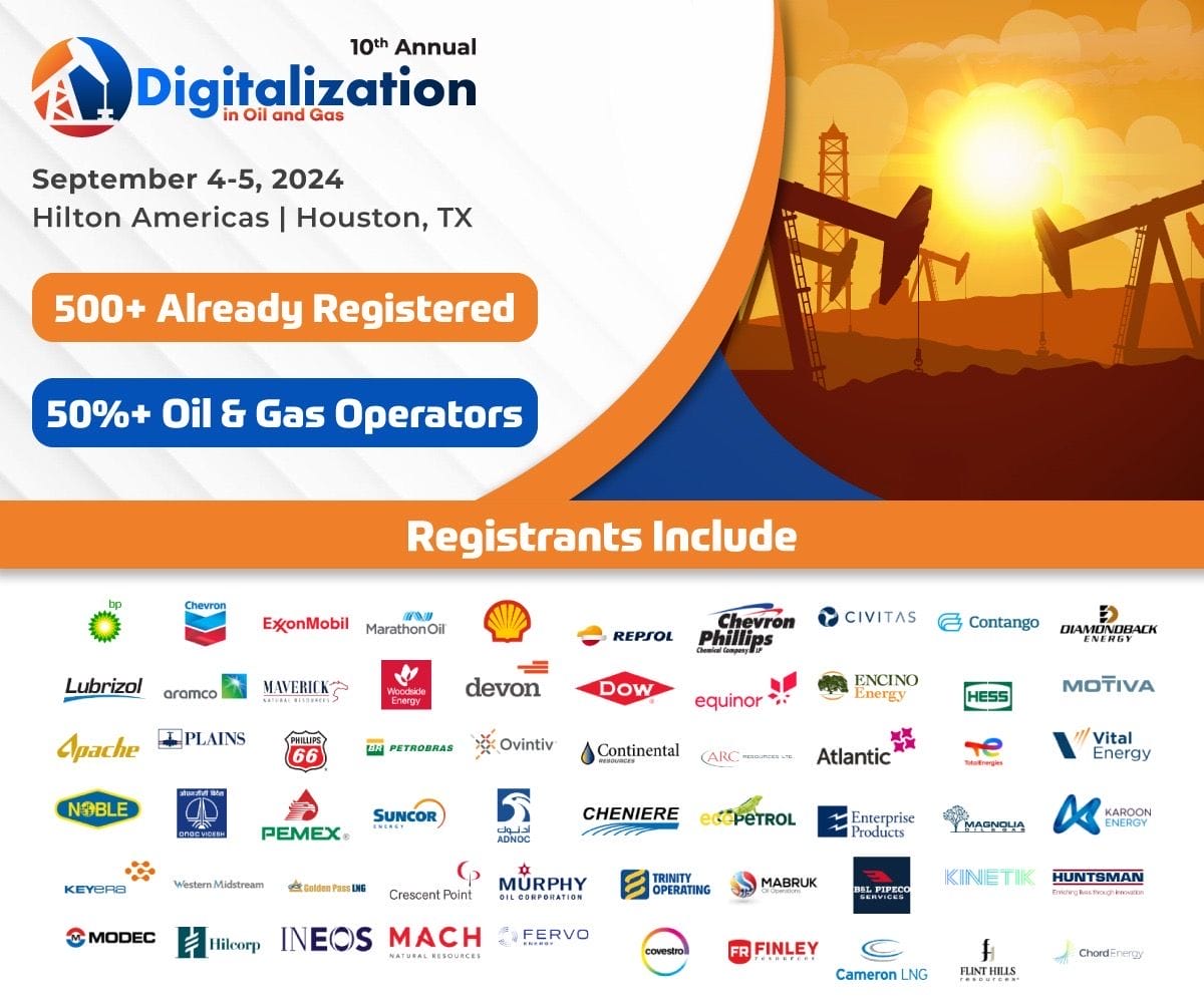 Register now for the 10th Annual Digitalization in Oil & Gas Conference by Energy Conference Network Sept 4 – Sept 5, 2024 – Houston