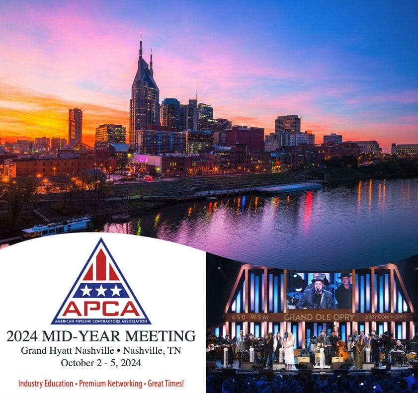 Register now for the APCA 2024 Mid-Year Meeting October 2 – October 5, 2024 – Nashville by American Pipeline Contractors Association