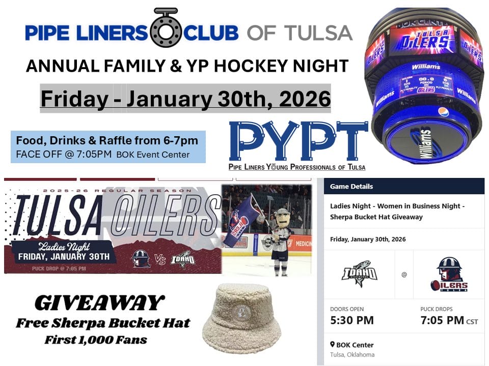 Register Now for the Pipe Liners Club of Tulsa Annual Family Night & YP Hockey Night Jan 30, 2026