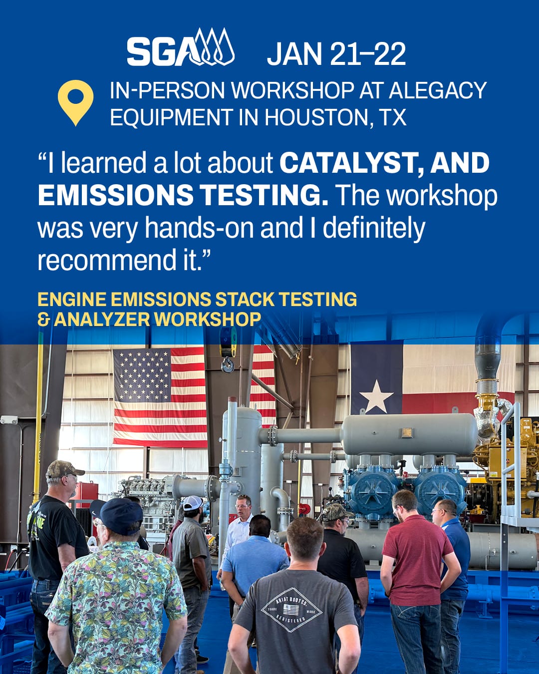 SGA Association Engine Emissions Stack Testing and Analyzer Workshop Jan 21-Jan 22, 2026 – Houston